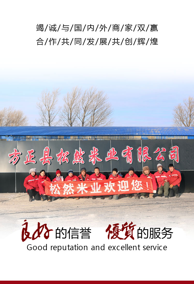 方正縣松然米業(yè)有限公司系一家專業(yè)從事大米加工的民營企業(yè),公司座落在富有“富硒大米之鄉(xiāng)”的方正縣得莫利鎮(zhèn)吉興村 。無重工業(yè),稻田均由水庫灌溉,有著特殊的農(nóng)業(yè)自然資源。公司始建于2009年,占地面積10000平方米,糧食倉儲能力在2萬噸。松然米業(yè)從無到有,由小變大,始終堅持以科技為依托,建制科學(xué)合理,安全生產(chǎn)運作齊全,專業(yè)化程度高,在激烈的市場競爭中保持著增長勢頭,銷售額逐年增加。及時、準(zhǔn)確、有效的為客戶服務(wù)提供了保證。成立以來,公司堅持以“鞏固、調(diào)整、發(fā)展、提高” 為原則,堅持走自己的產(chǎn)品之路,固定資產(chǎn)的投資在米業(yè)及其相關(guān)領(lǐng)域中增長,互網(wǎng)絡(luò)規(guī)模不斷擴(kuò)大與現(xiàn)代企業(yè)相接軌的數(shù)字化程度不斷提高,產(chǎn)品在米業(yè)市場的占有率上升。